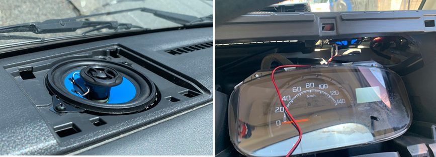 スピーカー側プラスのハーネスにギボシのオスを施工